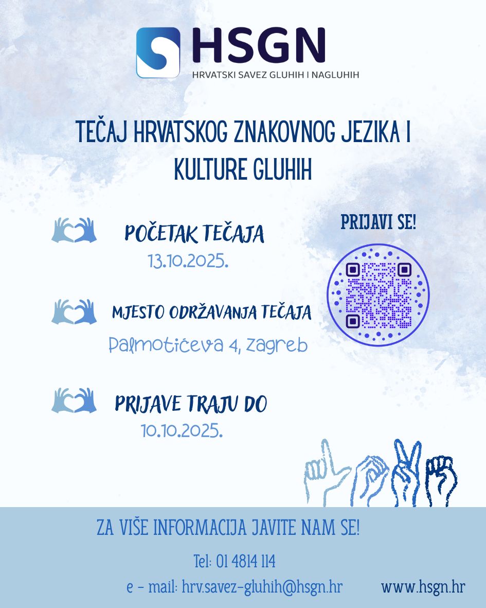 Počeli su upisi u novu sezonu tečajeva hrvatskog znakovnog jezika i kulture gluhih! Svi zainteresirani mogu se prijaviti na https://forms.gle/tdK96V1DkDybHFDh9 Tečaj počinje 1.10.2024. PRIJAVITE [...]